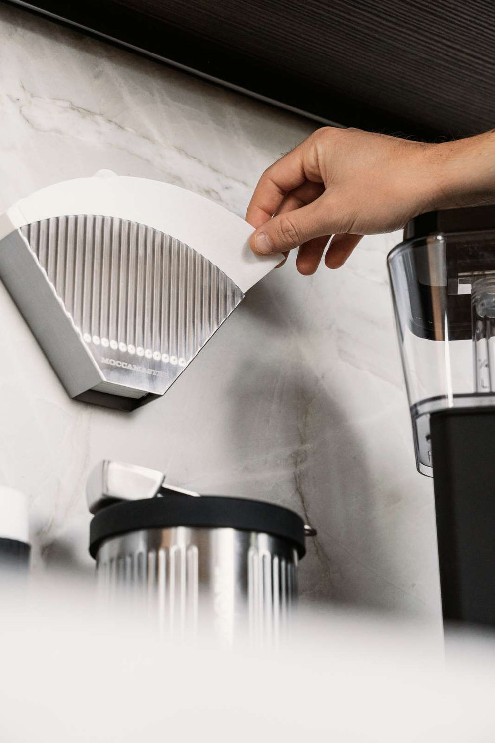 Elegant filterhållare i rostfritt stål av hög kvalitet med stabil silikonfot. Håller kaffefiltren samlade och alltid inom räckhåll – ett funktionellt och tidlöst tillbehör till köket. Den kan stå stadigt på bänken eller enkelt hängas på väggen med det medföljande upphänget, så att du alltid har filtren där du behöver dem.
